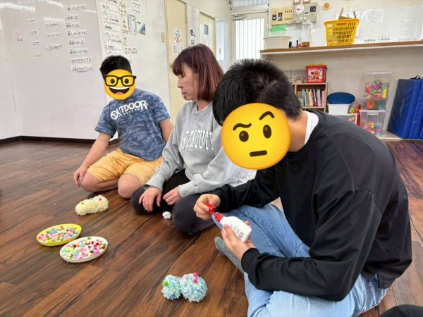 今回はプログラムで「ボンボンぐるみ」工作を行いました。