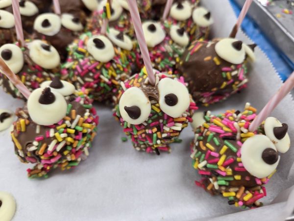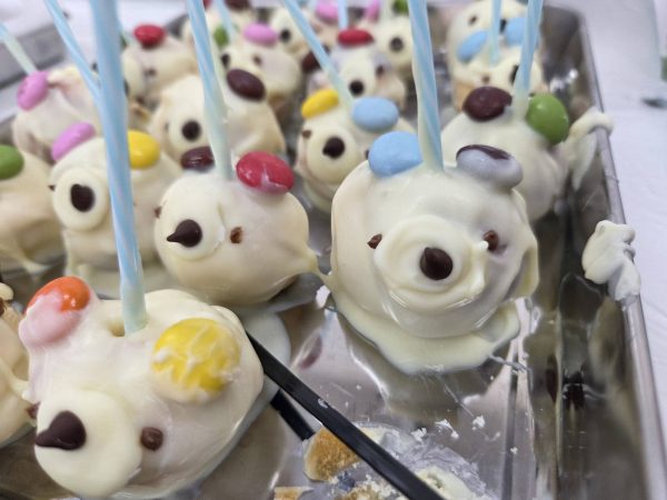 みんなでチョコレートを溶かして、カラフルなトッピングを加え、カラフルなまっくろくろすけと白熊のロリポップチョコレートを作成しました。